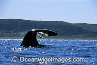 Southern Right Whale (Eubalaena australis) showing tail fluke on the surface. Photo taken in False Bay, South Africa. Classified Vulnerable on the IUCN Red List.