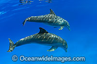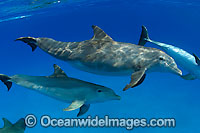 Bottlenose Dolphin (Tursiops truncatus) showing a pregnant female in the foreground. Found in tropical and sub-tropical oceans throughout the world. Photo taken in Bahamas, Caribbean Sea, Atlantic Ocean