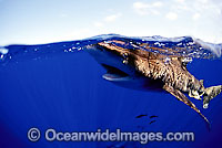 Under and over shot of an Oceanic Whitetip Shark (Carcharhinus longimanus). This pelagic shark is an aggressive species and is found worldwide in tropical and temperate seas.
