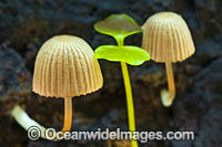 Fungi (Mycena sp.). Photo taken in Bruxner Nature Reserve Rainforest, Coffs Harbour, New South Wales, Australia.