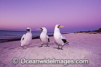 Masked Booby (Sula dactylatra) with chick. Lihou Reef Island, Coral Sea, Australia