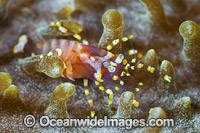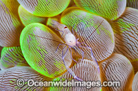 Commensal Shrimp (Vir philippinensis), resting on Bubble Coral (Plerogyra sinuosa). Found throughout the Indo-West Pacific, including the Great Barrier Reef, Australia. Photo taken off Anilao, Philippines. Within the Coral Triangle.