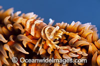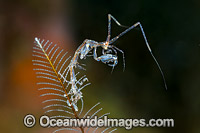 Ghost Shrimp (Caprella sp.), on stinging Hydroid with babies attached to its body. Also known as Skeleton Shrimp. Found throughout the Indo Pacific. Photo taken off Anilao, Philippines. Within the Coral Triangle.