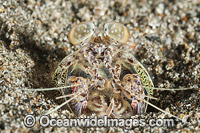 Mantis Shrimp (possibly: Lysiosquillina maculata). Photographed off Anilao, Philippines. Within the Coral Triangle.