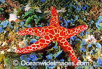 Spurred Sea Star (Patiriella calcar) - surrounded by encrusting Sponge. Also known as Spurred Starfish. Solitary Islands, New South Wales, Australia