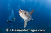 Divers observing an Ocean Sunfish (Mola mola). Found in tropical and temperate waters worldwide. Photo taken at Crystal Bay, Nusa Penida, Bali, Indonesia. Within the Coral Triangle.