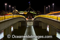 Parliament House at pre dawn, viewed from Commonwealth Ave Bridge, Canberra. Parliament House is the meeting facility of the Parliament of Australia, situated in the Australian Capital Territory, Australia.
