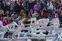 Spectators observing Australian Pelicans (Pelecanus conspicillatus) at a daily feeding show. The Entrance, New South Wales, Australia.