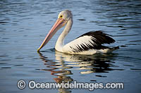 Australian Pelican (Pelecanus conspicillatus), resting on the surface of the ocean. This large water bird is found throughout Australia and New Guinea. Also in Fiji and parts of Indonesia and New Zealand. Central New South Wales coast, Australia.