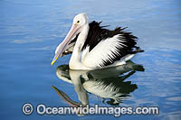 Australian Pelican (Pelecanus conspicillatus). This large water bird is found throughout Australia and New Guinea. Also in Fiji and parts of Indonesia and New Zealand. Central New South Wales coast, Australia.